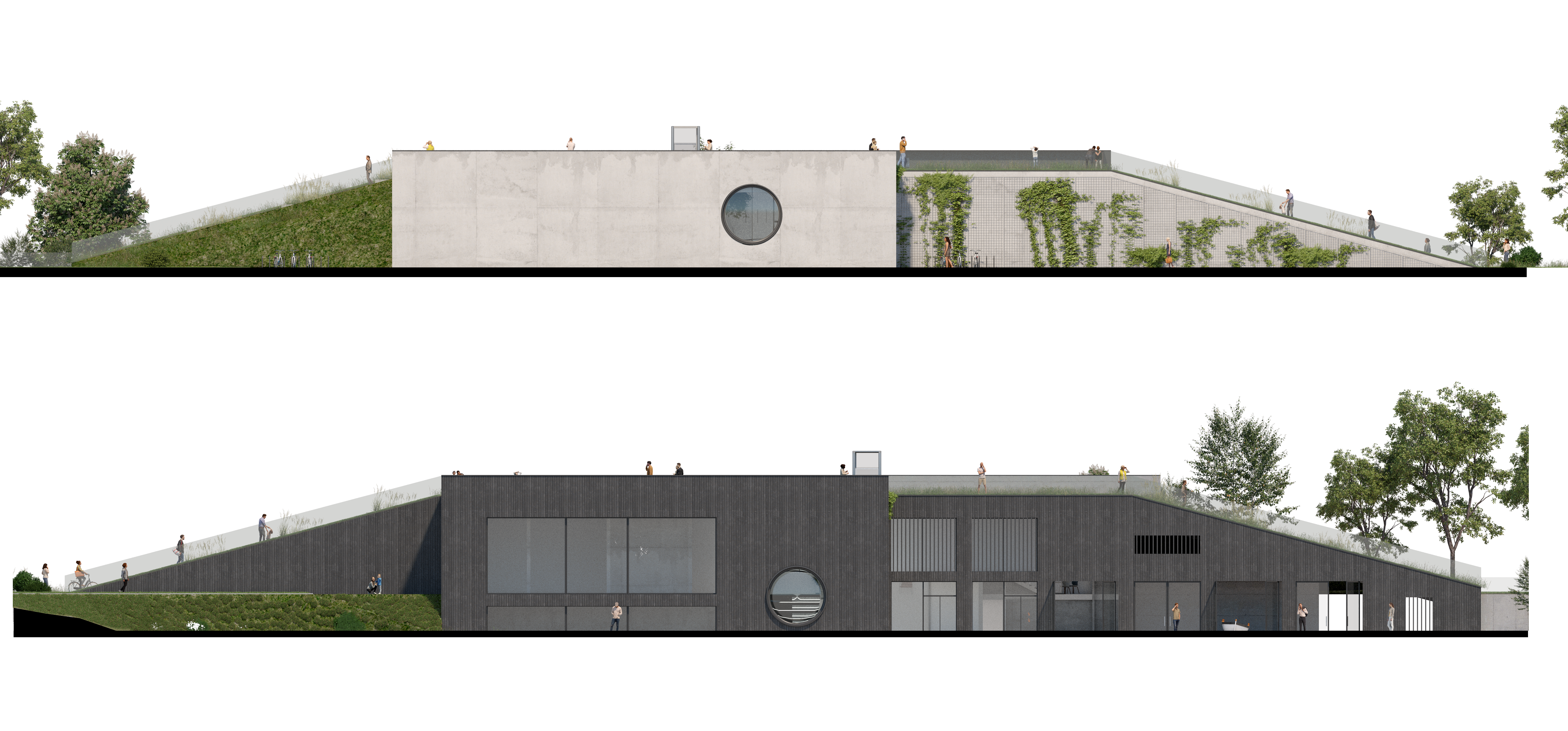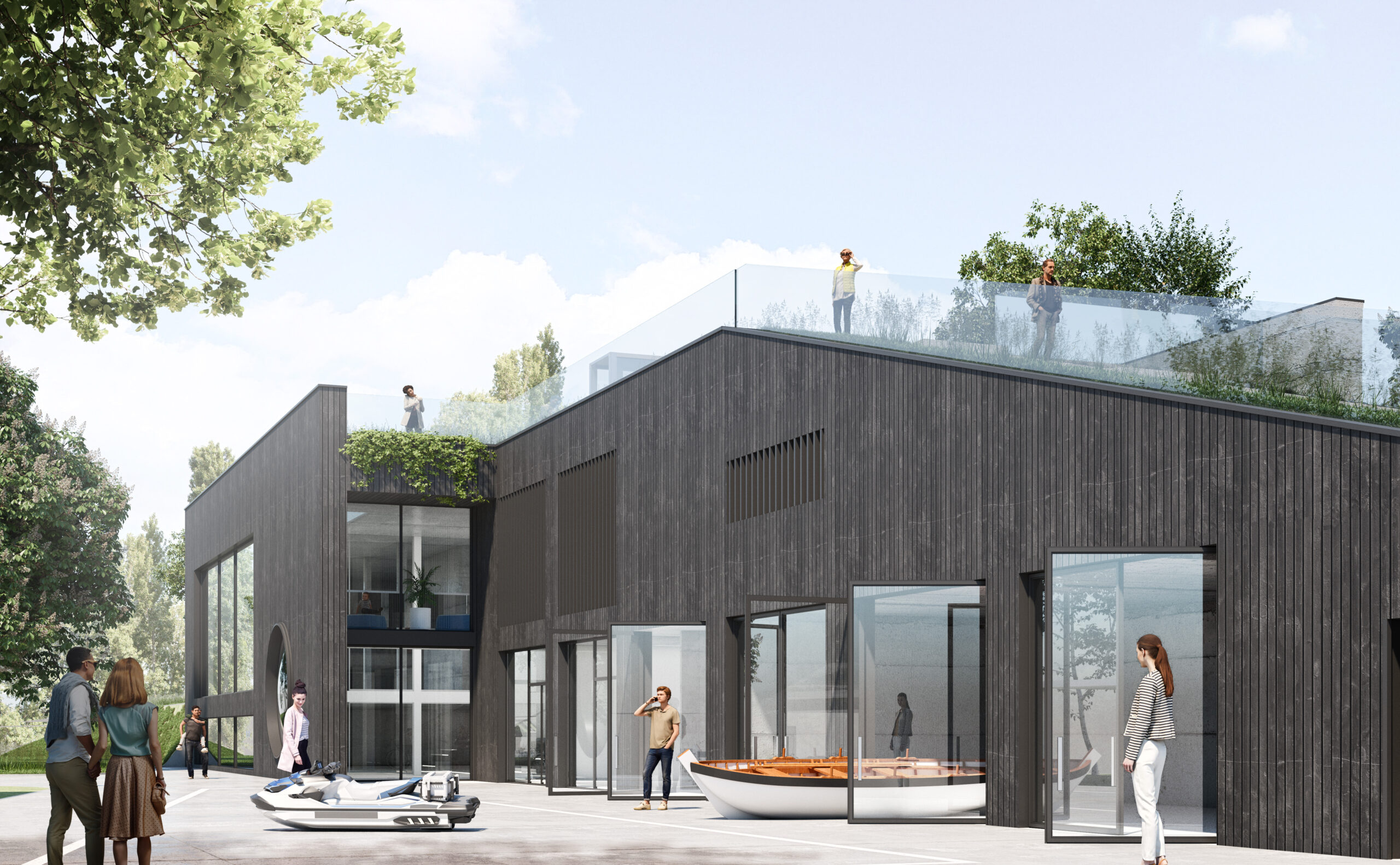 Projekt stanowi koncepcję wielofunkcyjnego budynku usługowego z bosmanatem, doskonale wpisującego się w krajobraz Portu Czerniakowskiego. Architektura budynku została zaprojektowana z myślą o harmonii z otoczeniem, dzięki wykorzystaniu naturalnych materiałów, takich jak drewno i beton, oraz stonowanej palecie kolorystycznej obejmującej biel, szarość i czerń.