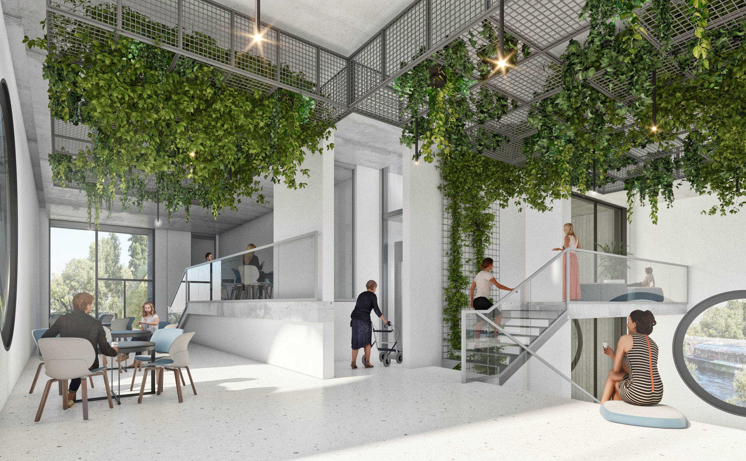 Budynek łączy funkcje użytkowe i rekreacyjne – znajduje się tu bosmanat, przestrzeń restauracyjna oraz inne usługi wspierające aktywności związane z portem i Wisłą. Ekologiczne podejście do projektowania zaowocowało rozwiązaniami, które pozwalają na maksymalne wykorzystanie naturalnego światła oraz integrację zieleni w strukturze budynku. Przestrzenie użytkowe otaczają tarasy i dachy pokryte roślinnością, co wpisuje się w założenie zrównoważonego rozwoju i poprawy jakości życia użytkowników oraz lokalnego środowiska.
