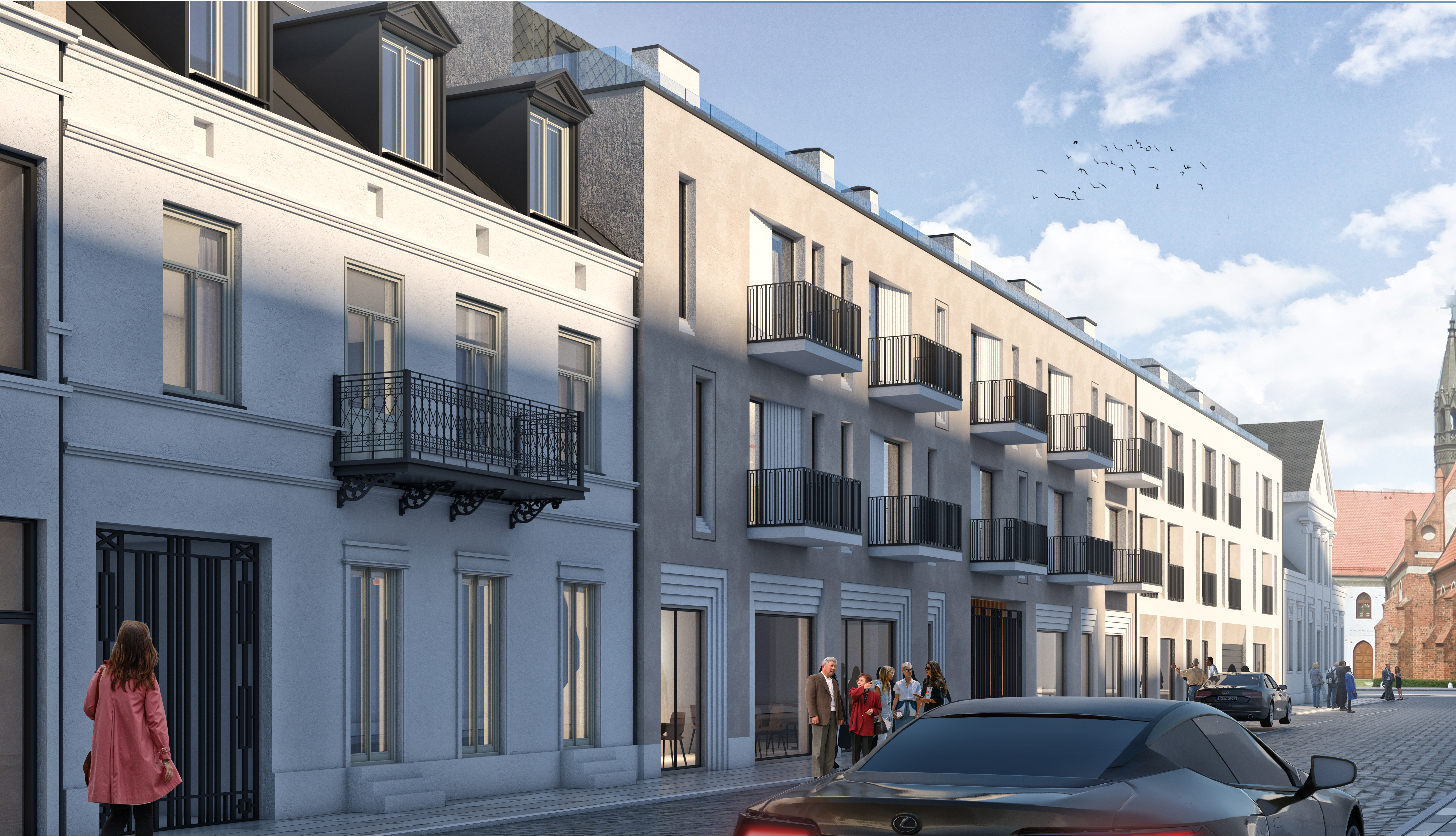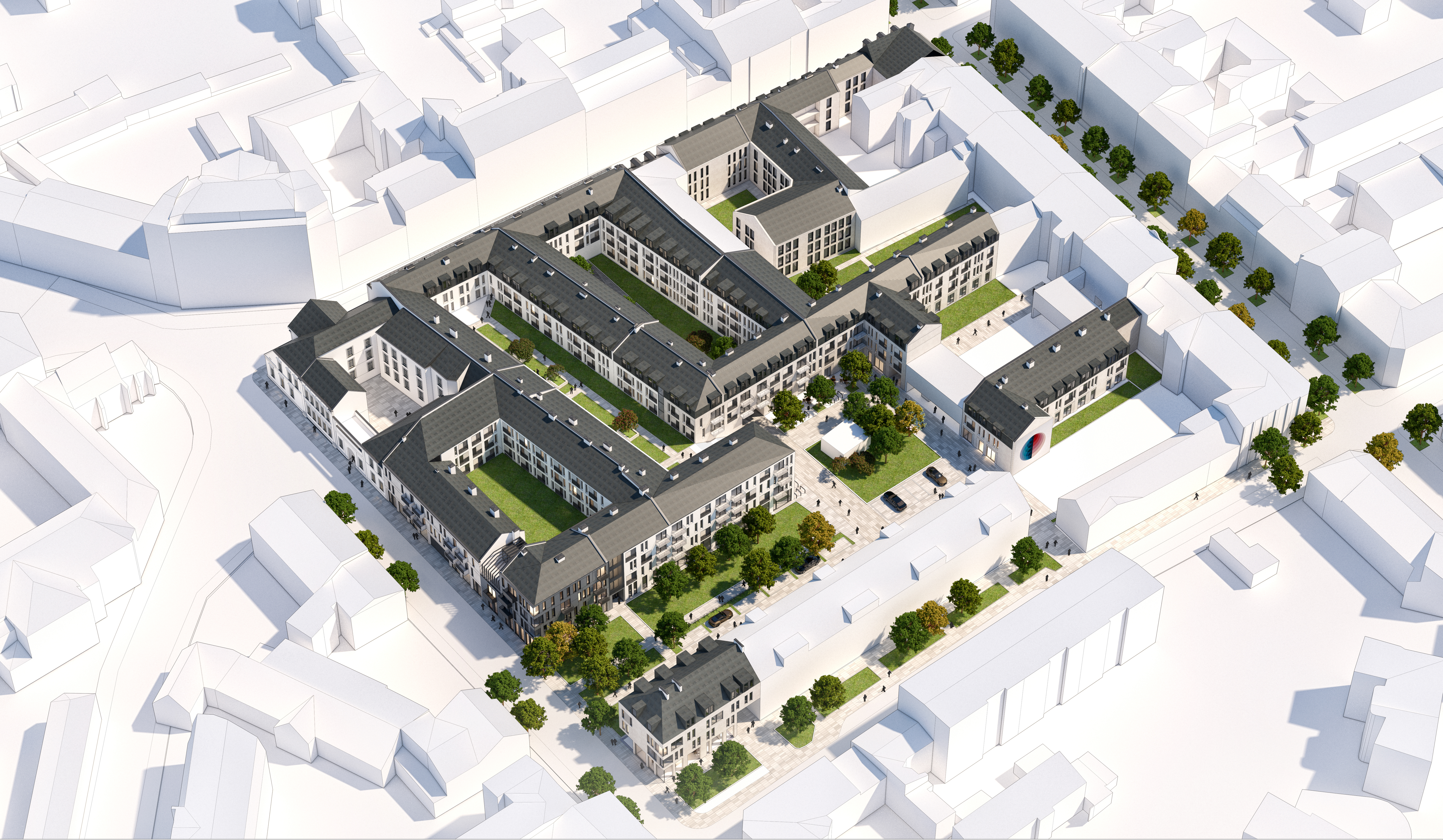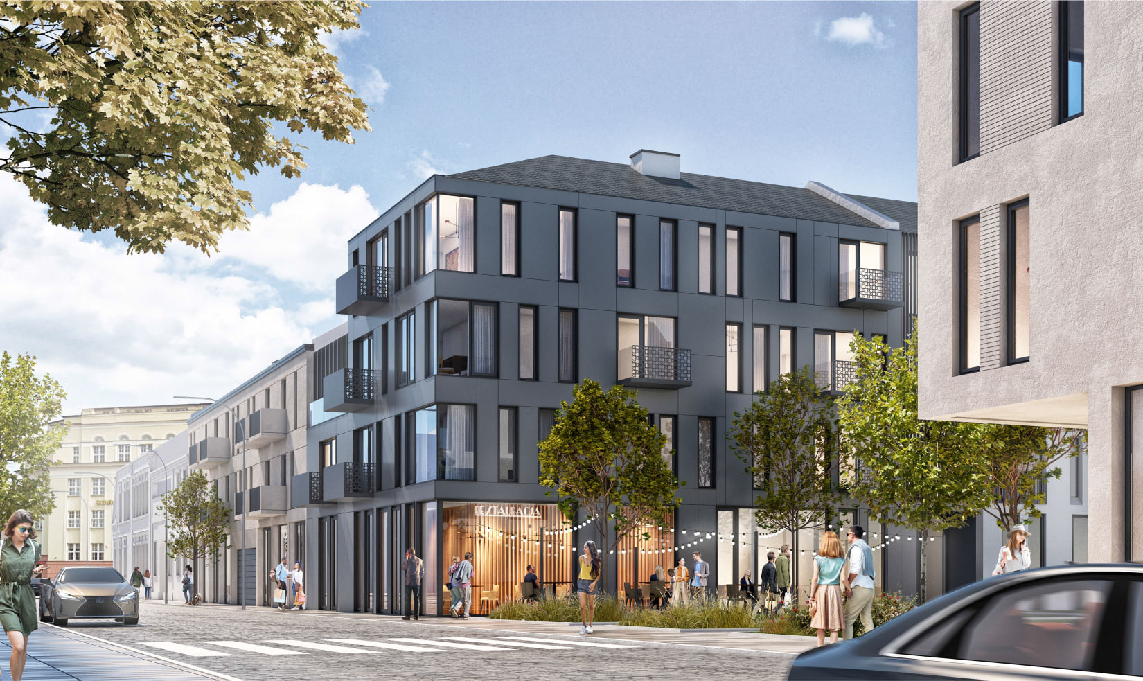 Koncepcja przewidywała kompleksowe zagospodarowanie kwartału miejskiego poprzez stworzenie nowoczesnego osiedla o zwartej zabudowie pierzejowej. Kilkukondygnacyjne budynki zostały zaprojektowane tak, aby harmonijnie wpisać się w otaczającą tkankę urbanistyczną, nawiązując jednocześnie do lokalnego kontekstu historycznego. Centralnym punktem osiedla stała się przestrzeń rekreacyjna z terenami zielonymi, alejkami spacerowymi i miejscami do odpoczynku. Dodatkowo wprowadzono elementy małej architektury, które sprzyjają integracji mieszkańców i tworzą przyjazne otoczenie do życia.