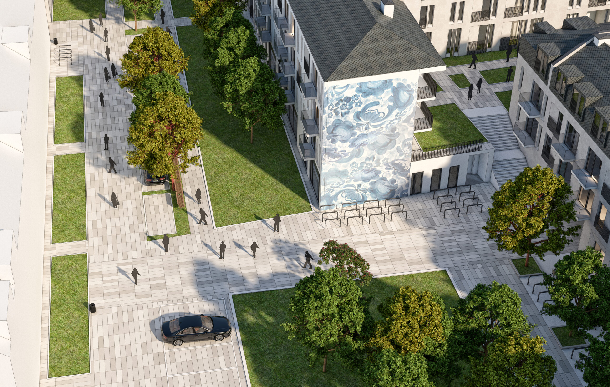 Charakterystycznym elementem projektu są murale na elewacjach budynków, które wnoszą do przestrzeni unikatową estetykę i odwołują się do lokalnej tożsamości Włocławka. Dzięki nim osiedle zyskuje niepowtarzalny charakter, przyciągając uwagę zarówno mieszkańców, jak i odwiedzających. Funkcjonalność osiedla została wzbogacona o podziemny parking, który nie tylko zapewnia wygodę użytkownikom, ale również ogranicza ruch samochodowy na powierzchni, czyniąc osiedle bardziej przyjaznym pieszym.